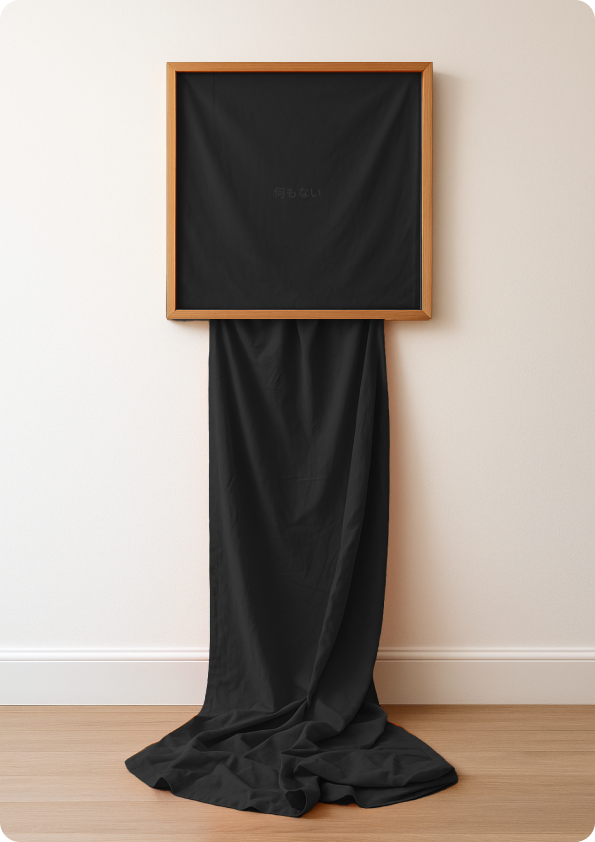 Japanese - 何もない Charcoal Black/Zen void - emptiness as fullness, absolute silence.